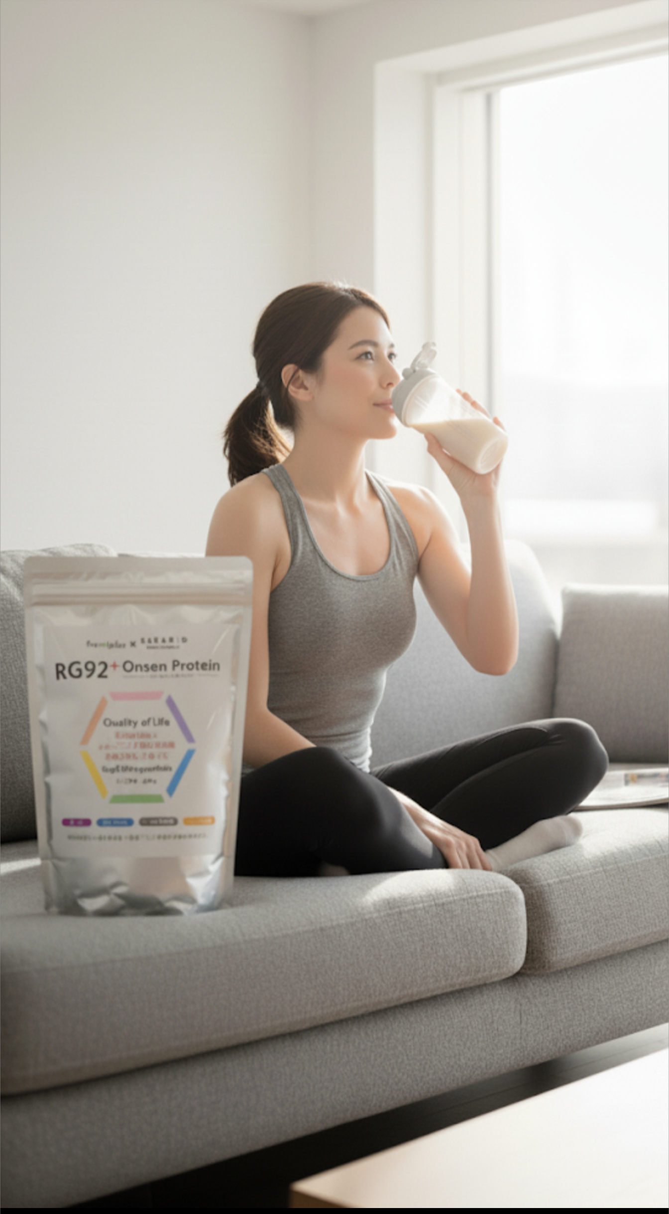 毎日の健康維持を考えたあなたに最適な選択肢。温泉の力を得たRG92オンセンプロテインで、充実したライフスタイルをサポートします!